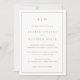 Enkel vigselannons med endast mottagningsinbjudan med en modern men ändå elegant design med din tvåbokstavsmonogram högst upp och dina detaljer omgivna av en tunn ram. All text är i falskt guld över en vit bakgrund och baksidan är solid svart. Teckensnitt och bakgrundsfärger kan ändras till valfri färg genom att klicka på "anpassa"-knappen. En chic och stilren design som passar perfekt för ett minimalistiskt par. Denna mottagningsinbjudan är bra om du redan är gift och vill fira med familj och vänner.