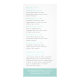 Elegant rack-kort med en enkel och modern design med text i en ljus akva-/turkos färg på vit bakgrund. Baksidan har din prislista / tjänsteförteckning. Denna design är perfekt för en dagsspa men kan modifieras för alla typer av verksamheter.
