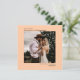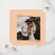 Det här enkla bröllop spara datum-kortet har en fyrkantig elegant med blekens orange eller korallpersikobakgrund och symmetriskt placerad text som är lämnat och marginaljusterad på överkanten och högerna som är marginaljusterad på grund. Ladda upp ditt foto och ge dina gäster i förväg meddela ditt kommande bröllop-datum.
