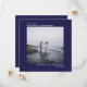 Det här enkla bröllop spara datum-kortet har en fyrkantig elegant med en marin blå bakgrund och symmetriskt placerad text som är lämnat och marginaljusterad på överkanten och högerna som är marginaljusterad på grund. Ladda upp ditt foto och ge dina gäster i förväg meddela ditt kommande bröllop-datum.