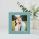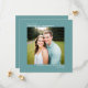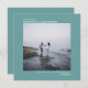 Det här enkla bröllop spara datum-kortet har en fyrkantig elegant med tealbakgrund och symmetriskt placerad text som är lämnat med ett omdöme överst och en höger som är motiverad på grund. Ladda upp ditt foto och ge dina gäster i förväg meddela ditt kommande bröllop-datum.