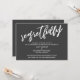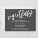 Denna svits utmärkande drag beror på det moderna, handskrivna typsnittet som används för accentfraser. Om du behöver låta dina gäster veta att ditt bröllop har ställts in, ger detta kort ett djärvt, iögonfallande alternativ. I denna pjäs användes det handskrivna typsnittet för att skapa en enkel grafik som visar ordet "regretfully". Använd mallfälten för att lägga till dina personliga detaljer och gör denna unika, moderna design till din egen. Den enfärgade bakgrunden kan ändras till valfri färg du föredrar. Vänligen kontakta oss med eventuella specialförfrågningar eller för anpassningshjälp. // 100 //