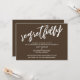 Denna svits utmärkande drag beror på det moderna, handskrivna typsnittet som används för accentfraser. Om du behöver låta dina gäster veta att ditt bröllop har ställts in, ger detta kort ett djärvt, iögonfallande alternativ. I denna del användes det handskrivna typsnittet för att skapa en enkel grafik som visar ordet "regretfully". Använd mallfälten för att lägga till dina personliga uppgifter och gör denna unika, moderna design till din egen. Den enfärgade bakgrunden kan ändras till valfri färg du föredrar. Vänligen kontakta oss med eventuella specialförfrågningar eller för anpassningshjälp. // 100 //