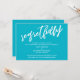 Denna svits utmärkande drag beror på det moderna, handskrivna typsnittet som används för accentfraser. Om du behöver låta dina gäster veta att ditt bröllop har ställts in, ger detta kort ett djärvt, iögonfallande alternativ. I denna pjäs användes det handskrivna typsnittet för att skapa en enkel grafik som visar ordet "regretfully". Använd mallfälten för att lägga till dina personliga detaljer och gör denna unika, moderna design till din egen. Den enfärgade bakgrunden kan ändras till valfri färg du föredrar. Vänligen kontakta oss med eventuella specialförfrågningar eller för anpassningshjälp. // 100 //
