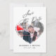 Enkel svart och vit skript minimalistisk kärlek hjärta foto spara datum. Detta är ett vertikalt "spara datum", där du lägger till ditt eget foto: ett landskapsfoto för framsidan (det är bäst om ni båda är centrerade i fotot så att ni båda syns i det hjärtformade designen), och du kan anpassa meddelandet på baksidan för att passa dina egna bröllopsdetaljer. Du kan också ändra formuleringen på baksidan, för att göra detta "spara datum" lämpligt för förnyelse av löften också.