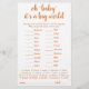 "Baby" från babydusch eller gender runt om i världen visar party-spel (med svar nedan) med en roligt, avslappnad handskript. SVAR NYCKEL: Detka - ryska, Moró - grekiska, Baba - ungerska, Bebis - svenska, Elska - isländska, troka - slovenska, Leanbh - iriska, toto - Swahili, Infans - latin, Bambino - italienska, Bebê - portugisiska, Pēpē - Hawaiian, Embé - vietnamesiska, beba - serbiska, Vauva - finska, Akachan - japanska, Bachcha - Hindi, Bebé - spanska, Babi- Welsh, Bébé - Fransk För annat färg eller matchande produkter, gå till butiken JustFharryn Zazzle eller kontakta designern, c/o Fharryn@yahoo.com Alla höger reserverade. #bohochic #zazzlemade
