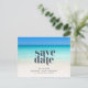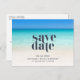 Spara datumet bröllop-vykort för ditt målbröllop på stranden i en enkel stranddesign med blå bläck. Lägg till information om bröllop på vykortets framsida och baksida - skicka e-post till vänner och familj och be dem att reservera ditt bröllop-datum.