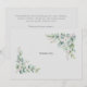 Begravning, sorg tack kort. Familjenamn och tack på baksidan. Personligt tack efter begravning. Livsförlust. Eukalyptus. Lövverk. Enkel.