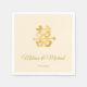 Denna enkla kinesiska napkin från bröllop har en konstnärlig lyckosymbol för guld dubbla på en beige bakgrund. Bride och groom namn i ett traditionellt skript för elegant. .