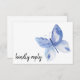 Uppmuntra dina gäster att svara snabbt på din inbjudan med detta enkla blå vattenfärg fjäril RSVP-kort.