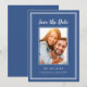Modern, enkel Spara Datumfotot med ram-design har din favoritbild förlovning bild som är inramad av ett skarpt vitt ram på en trendig rik Klassisk blå bakgrund. Anpassa och din förlovning och bröllop-information med dina gäster i skarpa, vita bokstäver och skript. Utformningen kompletteras med en modern dubbla ram i vitt. Kortets baksida är helblå.(För att bild ska kunna placeras på bästa sätt bör du använda en fotoredigering verktyg till mitten och skörd INNAN du laddar upp till Zazzles webbplats.) Den här porträtt-konfigurationskonfigurationen (höjden är underbarare än bredden) fungerar utmärkt med nära foton och rektangulära längdfoton av fullt och din fantasi. Välj din favorit! Kontakta invitationsuites@gmail.com med frågor eller anpassningsbar.