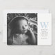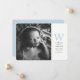 En enkel introduktion för din lilla en med ett foto, en stor babyblå initial, plats för statistik och föräldrar namn tillsammans med en prickig blå baksida. Texten och bakgrundsfärgen kan ändras genom att klicka på "anpassa" knappen.