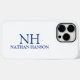 Modern telefonväska med en enkel och minimal blå och vit design med ditt monogram i ett fet teckensnitt tillsammans med ditt namn.