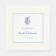 Italiensk inspirerad blå och gul bröllopsfest servetter med handritade citroner i mörkblå klotter och gula ränder. Anpassa med namn och datum.