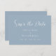 Enkel och modern vit på blå bakgrund bröllops- “Spara datumet”. Perfekt för bröllop under alla säsonger.