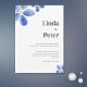 Enkla inbjudningar och inbjudningar från elegant bröllop med blå vattenfärgsblomma. Illustrerad och designad av Patricia Alvarez.