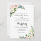Denna enkla blommiga gröna lövverk fram- och baksida bröllopsinbjudan är perfekt för ett tropiskt bröllop. Designen har vackra vita, rosa och blush handmålade rosor inbäddade i grönt lövverk som inspirerar till konstnärlig skönhet.