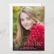 Det här minimalistiska studenten-kortet har trendig-typografi och ett stort foto. På framsidan står "Student" som skrivet i ett unikt guld-tecken med stor blomning. Studenten ligger i blomstringen och student namn och skolan ligger under. I typografin överlagras ett stort foto av lodrät. På baksidan av kortet i studenten finns en mall för att lägga till studentfest.