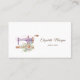 Professionell visitkort för modedesigner med vacker symaskin med blommor på vit bakgrund. Lägg till ditt namn och kontaktuppgifter för att göra ett bestående första intryck.