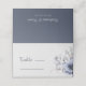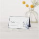 Det här är ett elegant dammigt blått bröllop-platskort med ljusblå och marinblå vattenfärgblommor Det är perfekt för en blommigt vinter-bröllop firande.