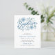 Gratulera till pojke baptism med denna charmerande inbjudan med delikat vattenfärg-stil blåa blommor och elegant modern typografi. Den vita bakgrunden och de handdragna blommigtarna skapar ett tidlöst och mjukt utseende, perfekt för baptismer, stolpar eller baby-engagemang. Fullständigt anpassade med dina ceremonier för en snygg personlig beröring.