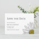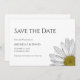 Blommigt Svart och vitt Spara datumkortet, med en daisy och enkel typografi. Med anpassadets svarta text kan du lägga till egna uppgifter. Den här minimala designen utgör ett underbart komplement till planeringsverksamheten i bröllop.
