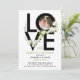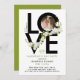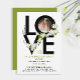 Den här moderna Alla hjärtans dag-festinbjudan innehåller ett fet, svart skript som stavar "Kärlek", som är vackert dekorerat med ett ömtåligt trädgårdsland med vita blommor och grönt löv. Inuti ett av brev finns ett par foto, vilket gör att designen får en personlig beröring. Baksidan av inbjudan är en livfull, skarp grönt som förbättrar dess attraktiva attraktion. Denna inbjudan till elegant kan även anpassas för andra tillfälle, t.ex. bröllop-årsdagen, födelsedagen, Påsk eller något speciellt firande. Med sina romantiska accenter och anpassaden för blommigt är det perfekten till gästerna i inbjudan till ett minnesvärt evenemang i fullt kärlek och glädje!