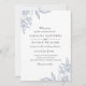 Den här vackra bröllopsinbjudan har en detaljerad utformning av blommigten i dammiga blått i hörnen på den övre lämnat högerna och grund, vilket skapar ett enkelt utseende på chicen. Ett färg-schema med vitt, dammigt blått och smutsat svart ge är en känslig men modern känsla. Anpassa bara texten till din speciella dag! Kontakta mig (Tracey) på orabellaprints@outlook.com för konstruktions- eller produktfrågor.