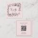 Enkel Blommigt Line Art Grått Rosa QRCode-Tack Fyrkantigt Visitkort