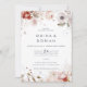 Den här enkla blommigten i en bröllopsinbjudan är perfekt för ett rustiskt bröllop. Den vimska boho-konstruktionen har rosa, blommor från burgundi och marsala med en moody och romantisk ton. Spara papper genom att inkludera uppgifterna på baksidan av bröllopsinbjudan i stället för på ett separat djurutrymmeskort. Ta även med OSA-informationen om din gäst svarar elektroniskt (valfritt).