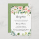Detta enkla blomsterriktiga gröna lövverk bröllopsmottagningskort är perfekt för ett tropiskt bröllop. Designen har vackra vita, rosa och skära handmålade rosor inbäddade i grönt lövverk som inspirerar till konstnärlig skönhet.