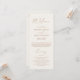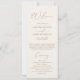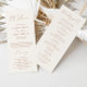 Med sin minimalistiska design och rustika terrakotta-färgpalett förkroppsligar detta program den perfekta blandningen av enkelhet och elegans. Det guidar dina gäster genom händelseförloppet, ger en tydlig översikt över din ceremoni och tillför en touch av naturlig skönhet till din bröllopsdekoration. Skräddarsytt med stor detaljrikedom sätter detta program tonen för en hjärtlig och intim firande av kärlek och engagemang. Designad för att samordna med «Harper» bröllopsinbjudningskollektionen. Se länken till samlingen på denna sida för att se alla matchande föremål i denna vackra design.