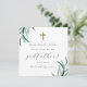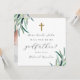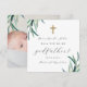 Enkla och moderna akvarellblad med kors botanisk fadder-förfrågan kort har "vill du vara min fadder" text med svart kalligrafi skrift typografi på en vit bakgrund. Denna fadder-förfrågan har en rustik minimal stil, med en grön ett foto baksida av kortet.