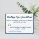Svarskort för OSA i elegant bröllop med marin blå bakgrund. Anpassa med information om OSA av bröllopsmottagning med hjälp av de enkla mallarna. Teckensnitt färg, stil och storlekt teckensnitt är anpassade. Klassisk och chic, det är perfektens svarskort för bröllopet OSA.