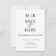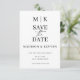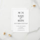 Dessa eleganta, moderna bröllops- eller brudars shower save the date har en enkel svart och vit textdesign som utstrålar minimalistisk stil. Lägg till dina initialer eller monogram för att göra dem helt dina egna.
