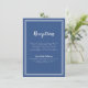 Enkel, minimalistisk och elegant informationskarta för bröllopsfest med en modern design med en dubbel ramkant i krispigt vitt på en trendig KLASSISK BLÅ bakgrund. Traditionell formulering ger tidlös men modern förfining. Anpassa bröllopsdesignen med dina detaljer i vit skrift och script. Baksidan av kortet matchar i enfärgad KLASSISK BLÅ.