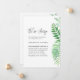 Denna moderna botaniska bröllopsförseningsnotis med löv är ett enkelt och sött sätt att låta inbjudna gäster veta att ceremonin har skjutits upp på grund av oförutsedda händelser.