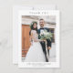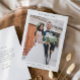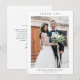 Enkel bröllopsfototackkort med minimal typografi och foto på framsidan. Baksidan har ytterligare detaljer.