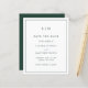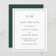 Med enkel budget sparar du datumet med en modern utformning av eleganten, med två brev monogram överst och dina bröllop-detaljer omgivna av ett tunt gräns. All design inslag finns i grönten Skog och kan ändras i designredigeringsverktyget i verktyg. En chic och snyggt som är underbar för ett minimalistiskt par.