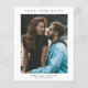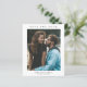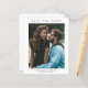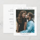 Enkel Budget Foto Bröllop Spara Datum med minimal typografi och foto på framsidan. Baksidan har ytterligare detaljer.