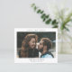 Enkel Budget Foto Bröllop Spara Datum med minimal typografi och foto på framsidan. Baksidan har ytterligare detaljer.