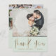 Stilrent och modernt, detta minimalistiska tackkort för bröllop har stor, elegant kalligrafi i en lyxig falsk guldbladsfinish på en mjuk grön bakgrund, med utrymme att visa upp fem av dina favoritbröllopsbilder. Denna stilrena, dubbelsidiga design är perfekt för att dela din speciella dag med vänner och familj medan du uttrycker ditt hjärtliga tack. Anpassa enkelt med dina egna bilder och meddelande för att skapa en verkligt unik souvenir. Perfekt för brud och brudgum tack-kort, efterbröllops-fotostationär eller anpassade tackkort för bröllopsfoto.