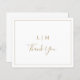 Enkel budget bröllop tack kort med en modern men elegant design med din två bokstävers monogram tillsammans med "tack" i en handskriven teckensnitt omgiven av en tunn kant. Baksidan har ditt personliga meddelande. Alla designelement är i falskt guld och kan ändras till valfri färg du önskar i designredigeringsverktyget. En chic och stilren design som är bra för ett minimalistiskt par.