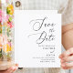 Gör ett stort första intryck av bröllop med den här enkla calligrafin Bröllop spara datum! Enkel budgetkalligrafi Bröllop spara datum