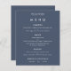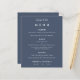 Enkel text Dammtork Blå Bröllopsmeny. Ett budgetpris MINDRE 4,5” x 5,6” alternativ. Finns i en HALVMATT 110 g CARD STOCK som är standardalternativet (rekommenderas för inbjudningar, liknande tjockleken på ett vykort), ELLER en SATIN FINISH 80 g TUNNARE PAPPER (idealisk för inklusioner). Du kan också ändra typsnittsstil och färger och den förtrollade dammiga blåa bakgrundsfärgen på framsidan och baksidan om du önskar via alternativet Klicka för att anpassa ytterligare.