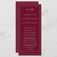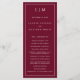 Modern Bröllopsprogram med en enkel men ändå elegant utformning med traditionell layout. Ditt två brev-monogram ligger överst tillsammans med dina detaljer omgivna av ett tunt gräns. All inslag som är utformad är vit över en burgundär bakgrund och kan ändras i designredigeringsverktyget i verktyg. En minimalistisk utformning med en klassisk känsla som är underbar för ett formellt bröllop.