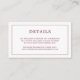Ett enkelt litet elegant i bröllop-höljet med en modern utformning med detaljerna omgivna av ett tunt gräns och ditt monogram på baksidan. All design inslag är i burgundi och kan ändras i designredigeringsverktyget i verktyg. En chic och snyggt som är underbar för ett minimalistiskt par. Använda dessa djurutrymmeskort för att ge anvisningar och andra viktiga uppgifter som dina gäster kan behöva känna till, t.ex. hotellrum, parkering, pendelinformation osv.