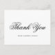 Elegant och klassiskt tack som vykortet har med en enkel design med "tack" i en svart kalligrafi tillsammans med ditt företag namn i ett serieteckensnitt, över en vit bakgrund. Baksidan har din returadress tillsammans med ditt personliga meddelande, namnteckning, titel och namn. En traditionell och klasssäker design som är underbar för alla professioneller.