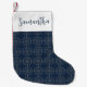Enkel calligrafi Skriptet Navy Silver Snöflingor Liten Julstrumpa