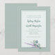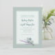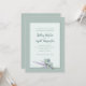 Bröllopsinbjudningar med minimalistisk design och modern text. Blågrå färger med en liten kvist eukalyptusblad längst ner. Anpassade tryckta och skrivna teckensnitt i tre sektioner. Den skiktade utseendet har mycket ljusgrönt som bakgrund med tunna linjer för att rama in texten. Paret namn är i handskriven stil. Inbjudan börjar med ”Glädjen av ditt sällskap begärs vid vigseln av” och är lätt att ändra för dina behov. Baksidan är mörk, enfärgat blågrå. Uppgradera papperet vid behov.
